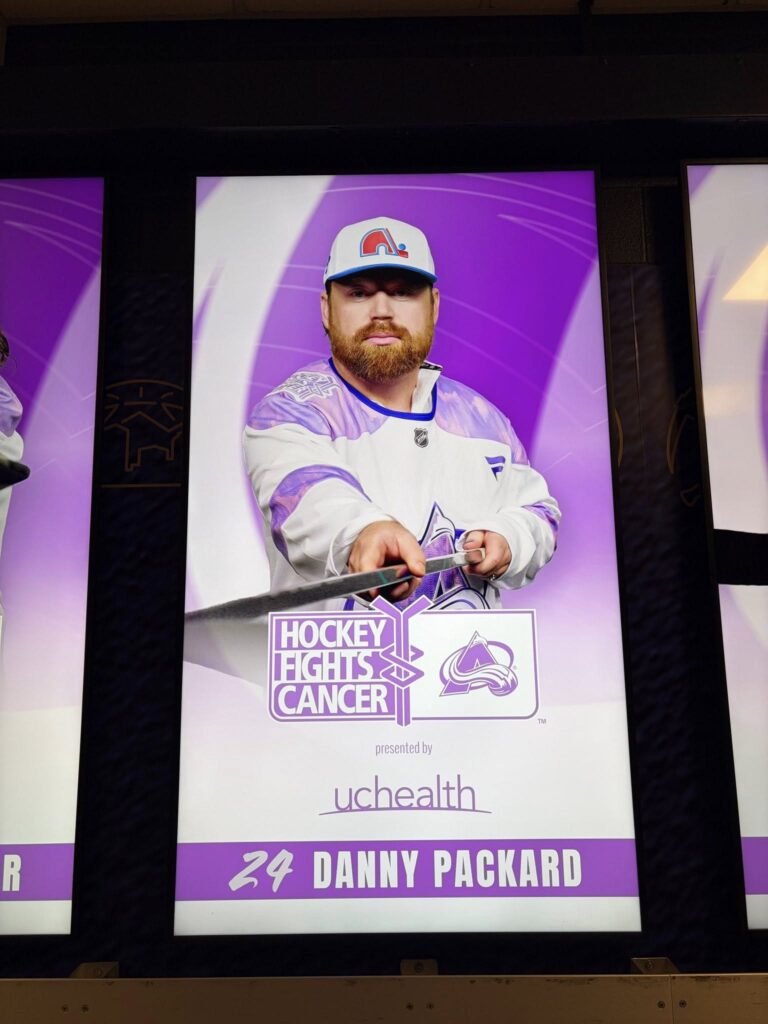 The NHL, and the Avs in particular, do a fantastic job on their annual Hockey Fights Cancer night. This is a special night for me on so many levels, but this year was just a little more special. Back in February of 2009 I was the captain of ordinary beer league team called the Dawgs. Our tight knit group included a 20 year old free spirited student named Danny Packard. We all loved Danny and were collectively rocked to the core when Danny shared he had cancer. That predicated the very first “passing of the hat” that a couple years later became DAWG Nation Hockey Foundation.