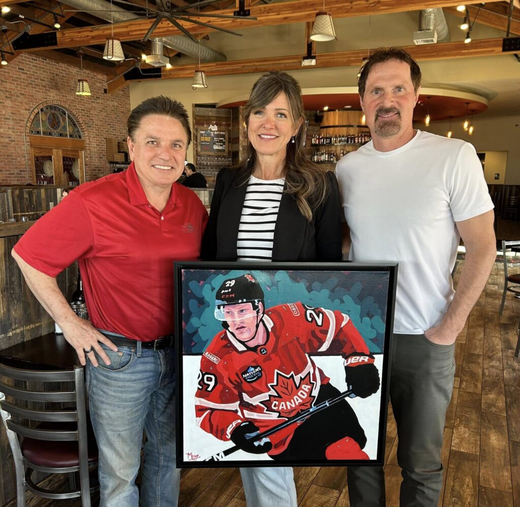 We also were spoiled by a visit from the talented Karin Moser who donated a painting of Four Nations MVP Nathan MacKinnon! That one will have a #29 signature added and will be part of next week’s “Stand-Up for Dawg Nation” auction.