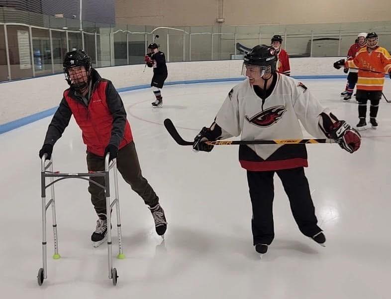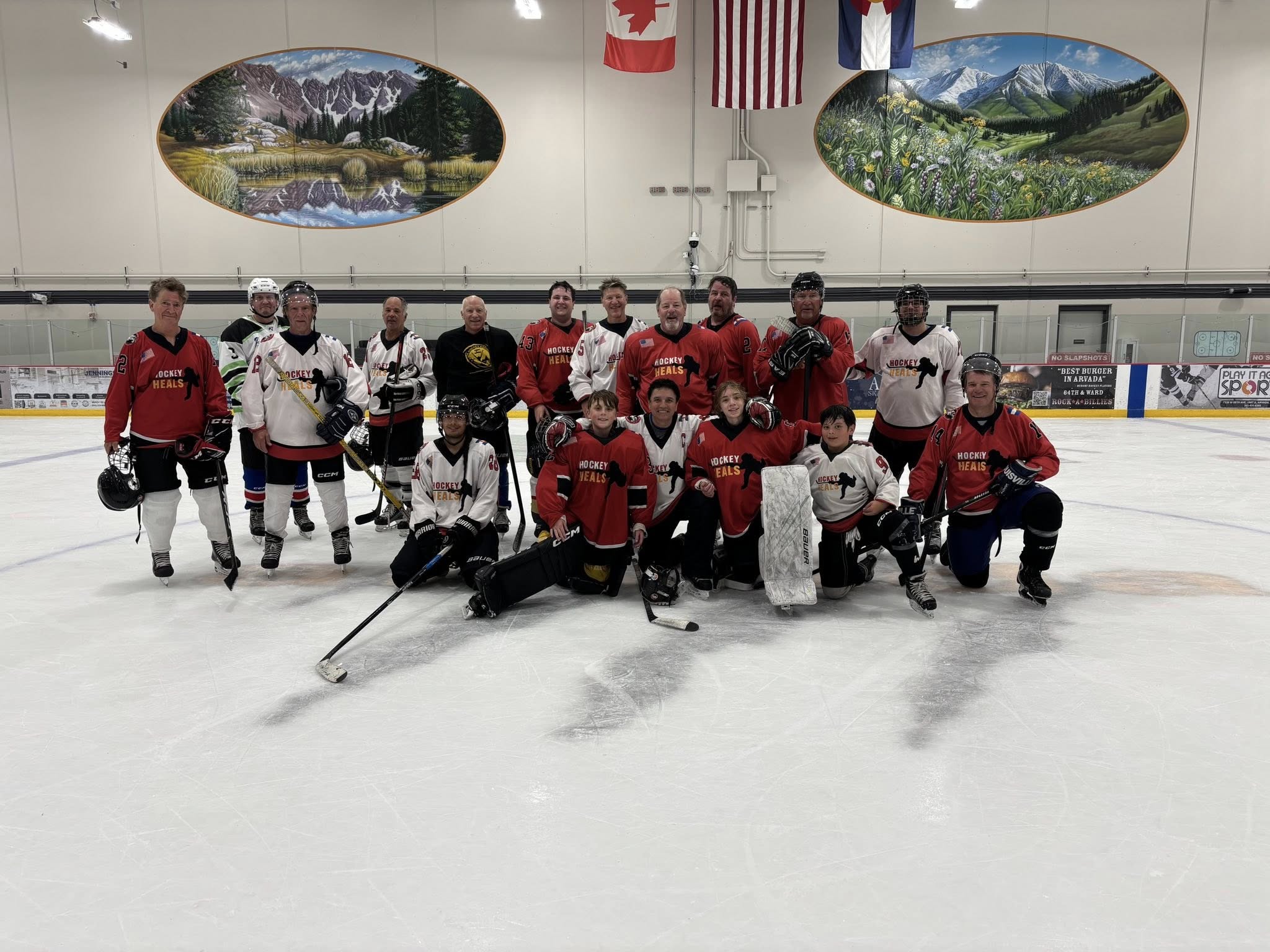 Exactly three years ago today Brian Peoples suffered a massive stroke changing his life path forever. The road to recovery hasn’t been an easy one, but it has included a large dose of Hockey Heals. Brian first joined us in 2023 as he navigated the ice using a walker. He now skates on his own and has become an integral part of our weekly sessions at APEX Ice Arena in Arvada. Today was punctuated when Brian calmly skated down the slot and let go a wicked wrister that caromed off the post and into the net inciting cheers from his teammates and an ear to ear grin on the face of this morning’s hockey hero! Yup, hockey really does heal!