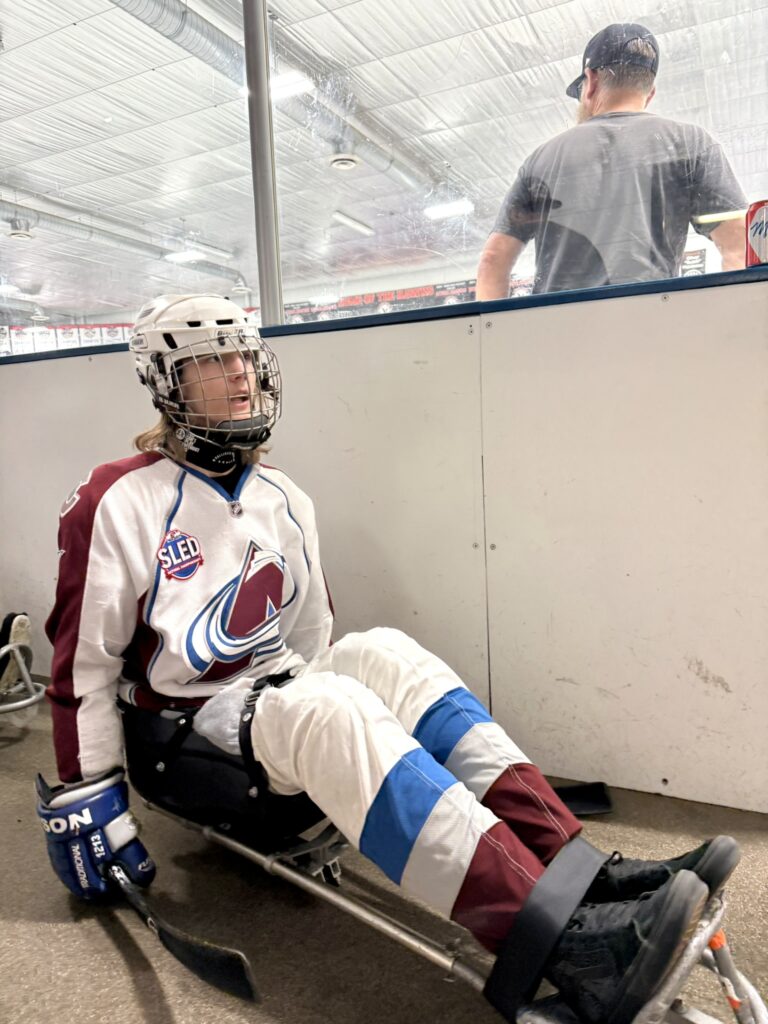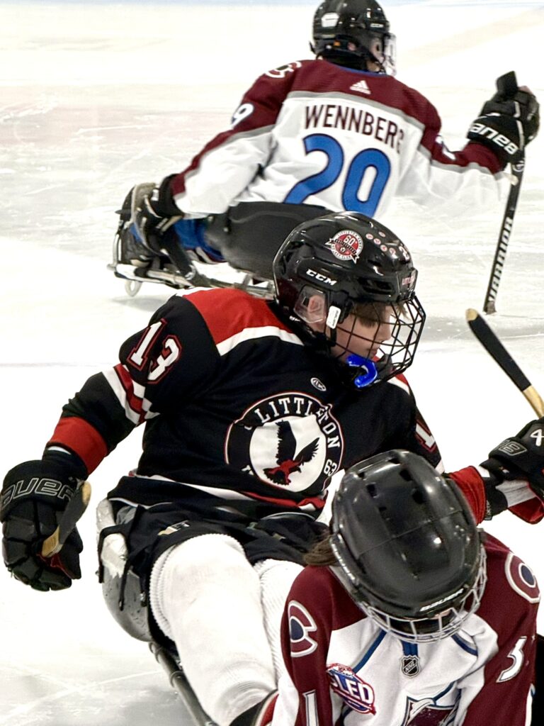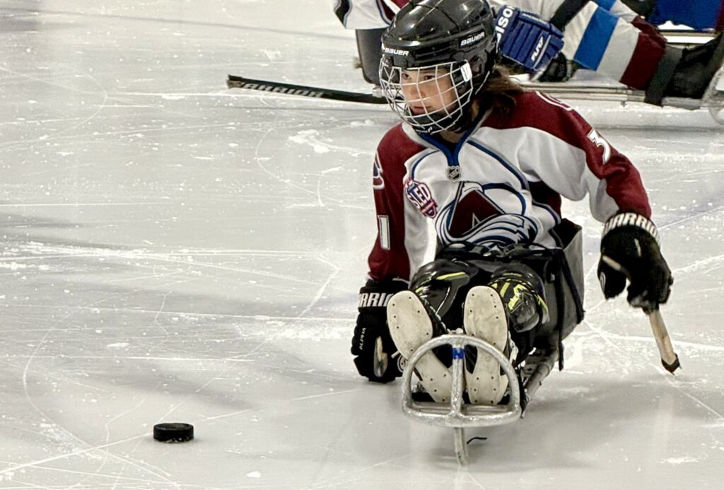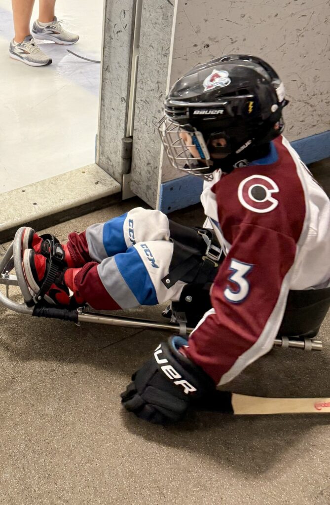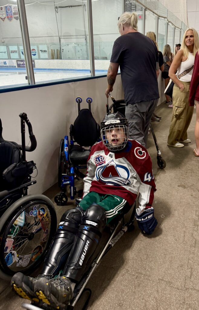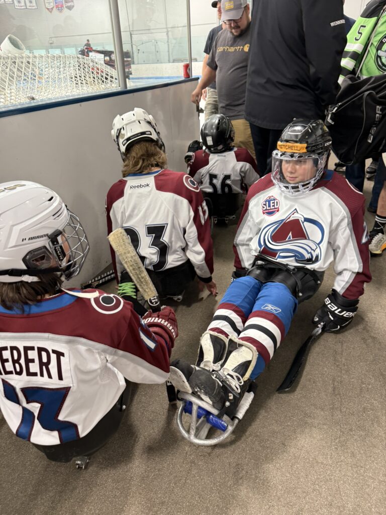 Proving once again that hockey is for everyone, the Colorado Youth Sled Hockey Team (aka, Jr Avs) played a great game for us on Saturday, with fast paced action, and a whole lot of smiles! Founded in 1995 and sponsored by the Colorado Avalanche, the sled hockey association is dedicated to providing a competitive environment in order to foster independence and community through hockey for youth with disabilities. These athletes define the term resilient, as they overcome obstacles to play the game they love. Taking the ice with them, the Littleton Hawks U11 team strapped on sleds for the first time and hit the ice with smiles and a joyful sense of competition. Dawg Nation’s own, Hunter Murphy, a recent recipient and undergoing his own heroic battle with cancer, is team captain for the Hawks, and took to the sled with enthusiasm. The Colorado Jr. Avs’ own Knox Hebert, a young athlete to watch, scored to put the team in the lead, which they held throughout. There was banter and laughter across the rink as these young athletes played with all heart and flew down the ice. The crowd cheered wildly with each goal scored! In the end, it was the Colorado Jr Avs Sled Team who came out with the win, 3-0. It was a great experience and a great game for all. As Hunter said, “It was really cool to see how kids with disabilities play the game.” Hunter and his teammates on the Hawks found it more challenging than they expected. He added “I think it’s really cool to see how other people see the world and how they play sports. I love that Dawg Nation, JP, and Knox Hebert gave me a chance to play sled hockey.” And Hunter’s mom, Heather Torbit, added “Having hockey taken away when it was so much a part of his heart and soul was an additional crushing reality to his cancer diagnosis. Getting involved with Dawg Nation gave Hunter the ability to see that hockey is something he’ll never have to give up. Watching my son play, with his teammates, is immeasurable in its impact. His competitive spirit and joy came back tenfold and now he can’t wait to do it again!”