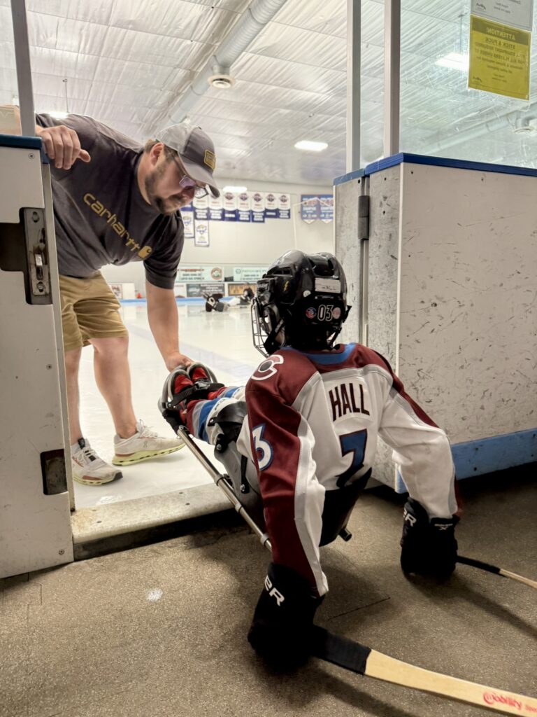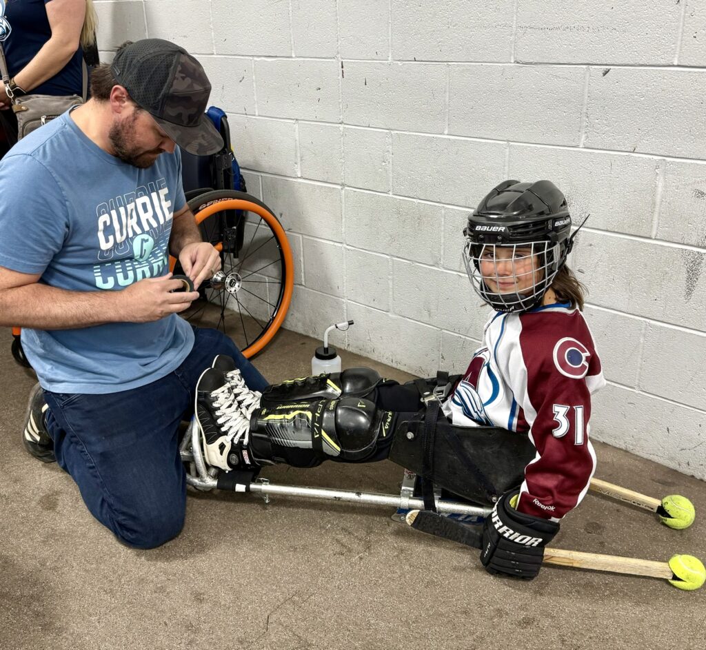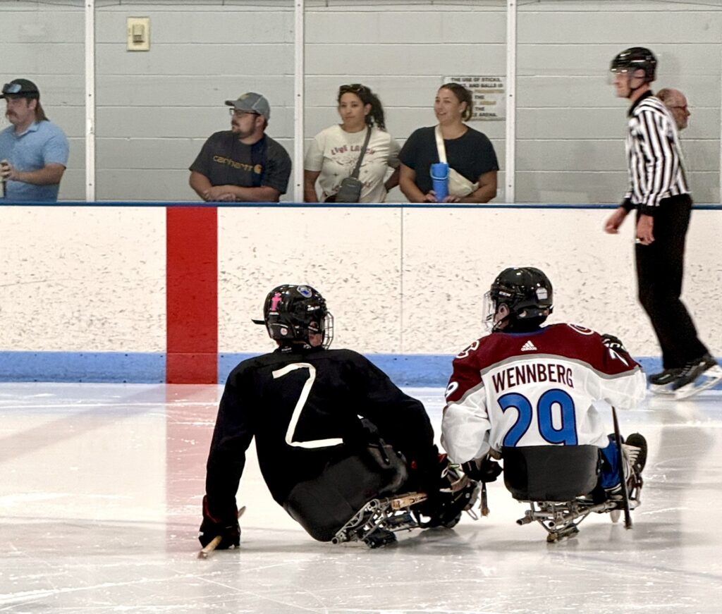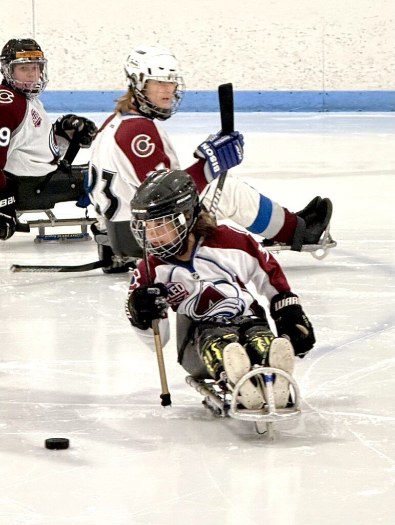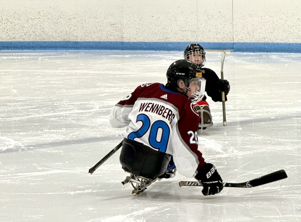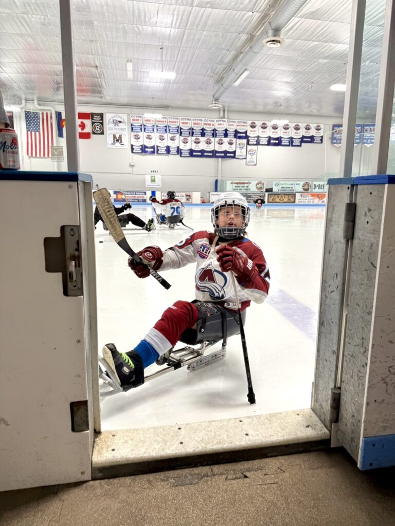 Proving once again that hockey is for everyone, the Colorado Youth Sled Hockey Team (aka, Jr Avs) played a great game for us on Saturday, with fast paced action, and a whole lot of smiles! Founded in 1995 and sponsored by the Colorado Avalanche, the sled hockey association is dedicated to providing a competitive environment in order to foster independence and community through hockey for youth with disabilities. These athletes define the term resilient, as they overcome obstacles to play the game they love. Taking the ice with them, the Littleton Hawks U11 team strapped on sleds for the first time and hit the ice with smiles and a joyful sense of competition. Dawg Nation’s own, Hunter Murphy, a recent recipient and undergoing his own heroic battle with cancer, is team captain for the Hawks, and took to the sled with enthusiasm. The Colorado Jr. Avs’ own Knox Hebert, a young athlete to watch, scored to put the team in the lead, which they held throughout. There was banter and laughter across the rink as these young athletes played with all heart and flew down the ice. The crowd cheered wildly with each goal scored! In the end, it was the Colorado Jr Avs Sled Team who came out with the win, 3-0. It was a great experience and a great game for all. As Hunter said, “It was really cool to see how kids with disabilities play the game.” Hunter and his teammates on the Hawks found it more challenging than they expected. He added “I think it’s really cool to see how other people see the world and how they play sports. I love that Dawg Nation, JP, and Knox Hebert gave me a chance to play sled hockey.” And Hunter’s mom, Heather Torbit, added “Having hockey taken away when it was so much a part of his heart and soul was an additional crushing reality to his cancer diagnosis. Getting involved with Dawg Nation gave Hunter the ability to see that hockey is something he’ll never have to give up. Watching my son play, with his teammates, is immeasurable in its impact. His competitive spirit and joy came back tenfold and now he can’t wait to do it again!”