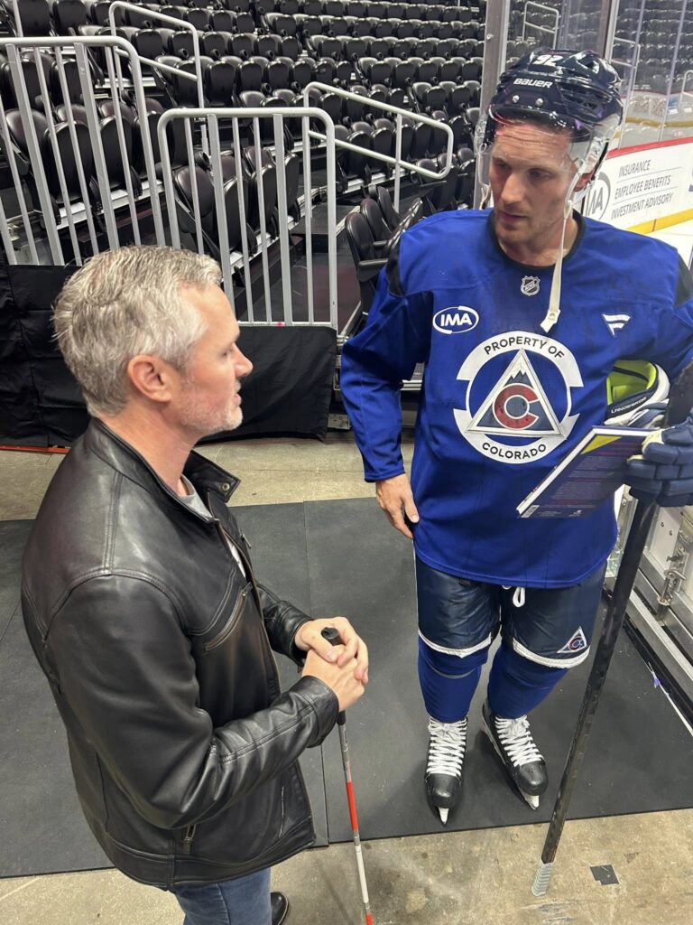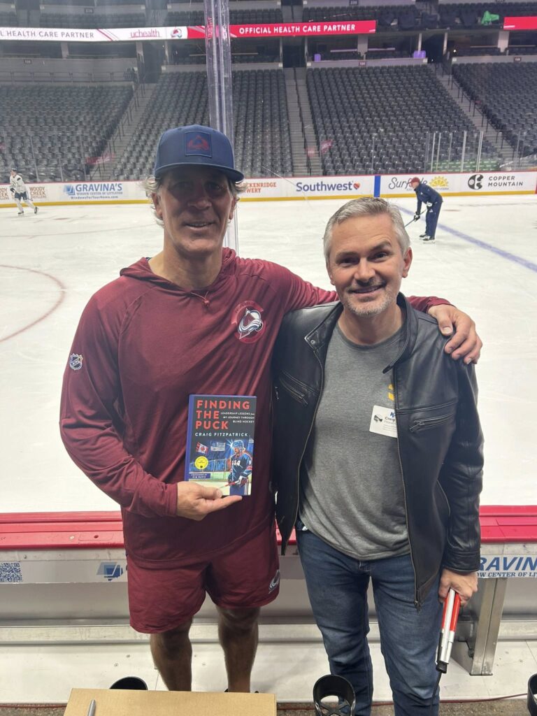 He is in midst of releasing a book on his life and his hockey journey. All proceeds will go to growing the sport with the goal of making Blind Hockey part of the Paralympics. Craig‘s ambitions are high, and so are mine, so I took Craig to the morning skate at Ball Arena today and he gifted signed books to Joe Sakic, Jared Bednar, Matt Duchene, John-Michael Liles and Gabe Landeskog! All took the time to hear Craig’s story and offer their assistance.