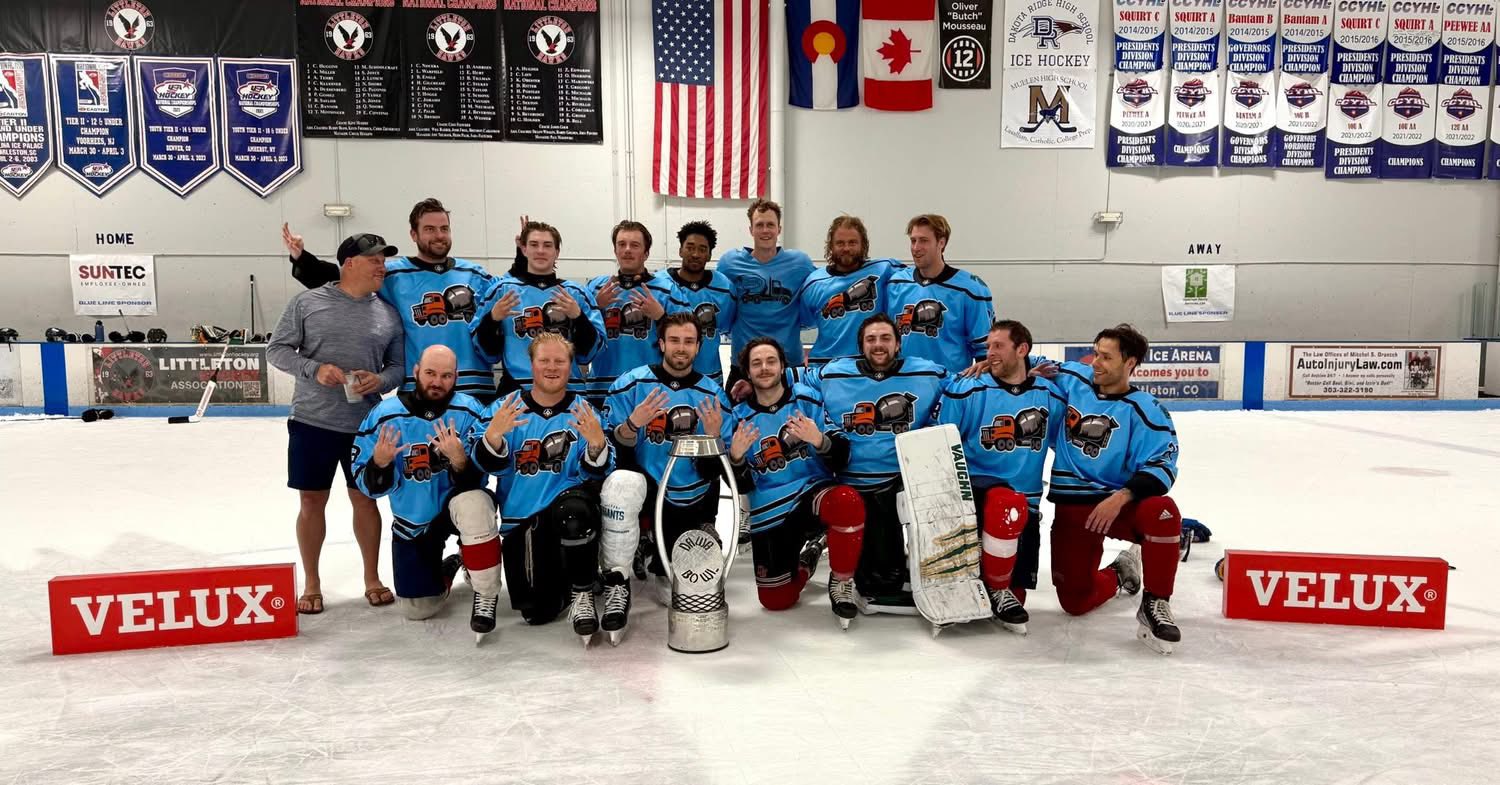 There are dynasties and then there are DYNASTIES! Denver Concrete, led by Nick and Michael Hantge, are a perennial powerhouse at the Dawg Bowl, and this year secured an eye popping eighth straight.championship in the tourney’s elite division! The Platinum Division is filled with current professional and college players, and each year even boasts a few NHLers! Peter McNab once said, “I don’t think there is another tourney in the country with more talent than the Dawg Bowl”! What makes the Denver Concrete clan even more impressive is the fact that almost the entire roster is made up of home grown Colorado kids!! Led by A.J. Vanderbeck, Tyler Poulsen and Will Graber, the DC boys are showing us all how incredible the hockey talent in Colorado is! Hats off to all of the amazing players that take the time to participate in the annual Dawg Bowl! And special thank you to Michael and Nick for building a team that is filled talent, but even more class! A tip of the the “Cappy” to the most successful team in Dawg Bowl history!