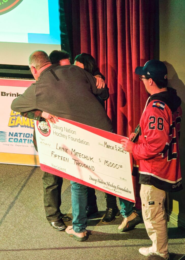 We were honored to have as our guests some of Avalanche royalty, including Milan Hejduk, Jared Bednar, Mark Moser, Michel Goulet and their lovely wives, as well as DU Pioneers Aiden Thompson and Matt Davis. All of whom brought their A-game to our auction by contributing priceless original artwork, incredible one of a kind experiences and adding a new level of excitement to the bidding antics! Also in attendance was the family of Layne Matechuk. Layne suffered a traumatic brain injury in the Humboldt bus crash (4/6/18) and was honored with a surprise check to aid him in his long road to recovery.