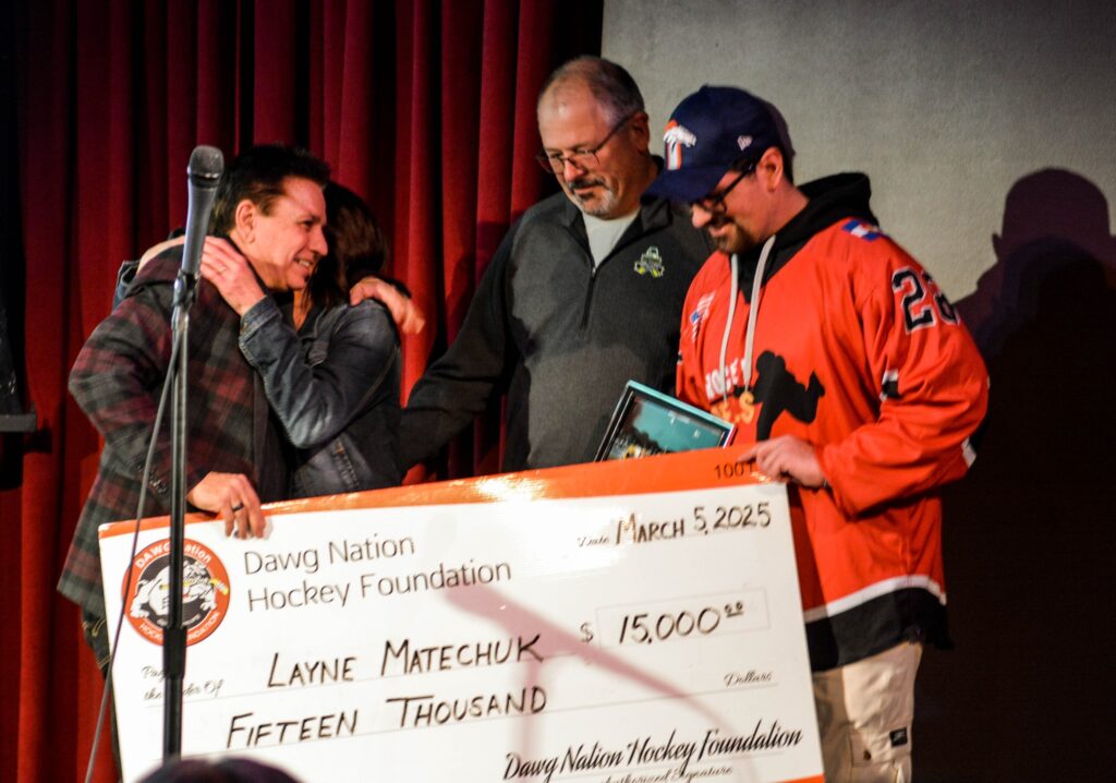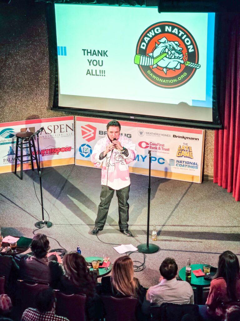 We’ve come to count on Stand Up For DAWG Nation to bring both laughter and tears, and our 2025 event did not disappoint as we celebrated inspiring stories of overcoming adversity, beating cancer, and getting back on the ice with Hockey Heals. All while being entertained with a “lively” live auction and laughing till our sides ached with some of the best comics in the business, Chris Voth and Nancy Norton.