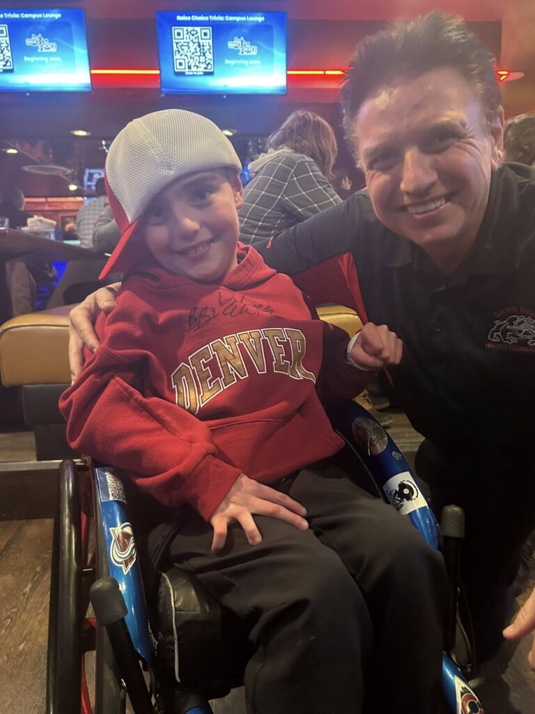 It was memorable evening at the Campus Lounge as we shared the Everett Jeske story. Everett was born with cerebral palsy but that hasn’t stopped this amazing kid from living life to its fullest. The Jeske family recently moved to new home to accommodate Everett’s mobility challenges, however the home needed some major renovations that were beyond daunting to the Jeske family. That’s when our good friend Josh Thall and Spyder Construction stepped in. The project is nearly complete making life much easier for the Everett and his family. Last night we were able to share the Jeske story on the “Cappy’s Corner” segment of the David Carle Show. To make it even more special, Everett met DU coach David Carle, and defensemen Kent Anderson and Boston Buckberger. All three taking time to chat with the family and get to know this amazing kid. This Saturday we will officially unveil the new and improved Jeske home and Everett will be taking on the Dawg Father in the epic bubble hockey showdown! Thank you Josh, Spyder Construction and everyone that continues to step up to help us make the world a better place!