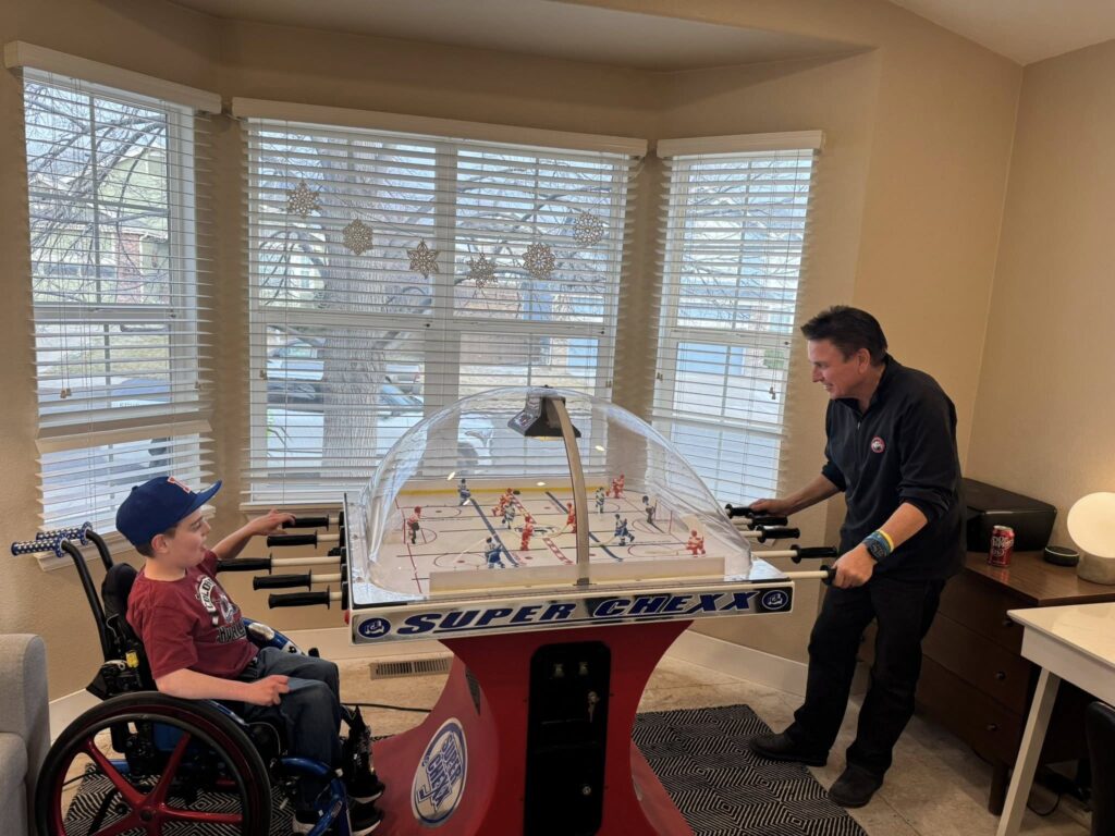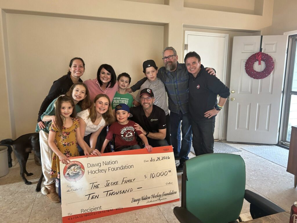 It was quite a day for Everett Jeske. This eleven year old faces every day with determination and courage. Born with cerebral palsy, routine tasks can be challenge for this sports fanatic and sled hockey player. The Jeske family recently moved to a new home as their former tri-level home was very difficult for Everett to navigate. That’s where Josh Thall and Spyder Construction came in. They were able to widen doors and complete an incredible handicapped accessible bathroom perfect for Everett. We officially unveiled it yesterday and we’re also able to surprise the family with a check for $10,000! The day wrapped up with Everett schooling the Dawg Father in an epic Bubble Hockey matchup. Stay tuned to round two, because we weren’t quite done with Everett yet!