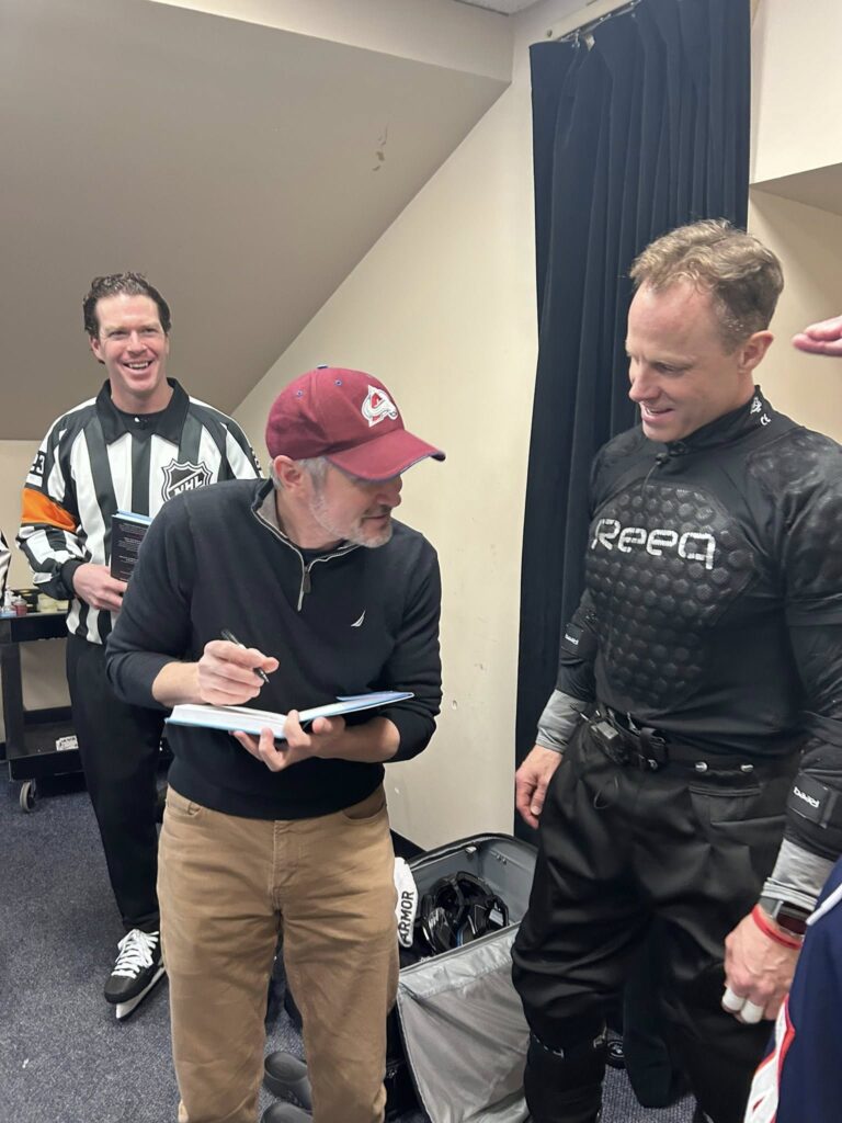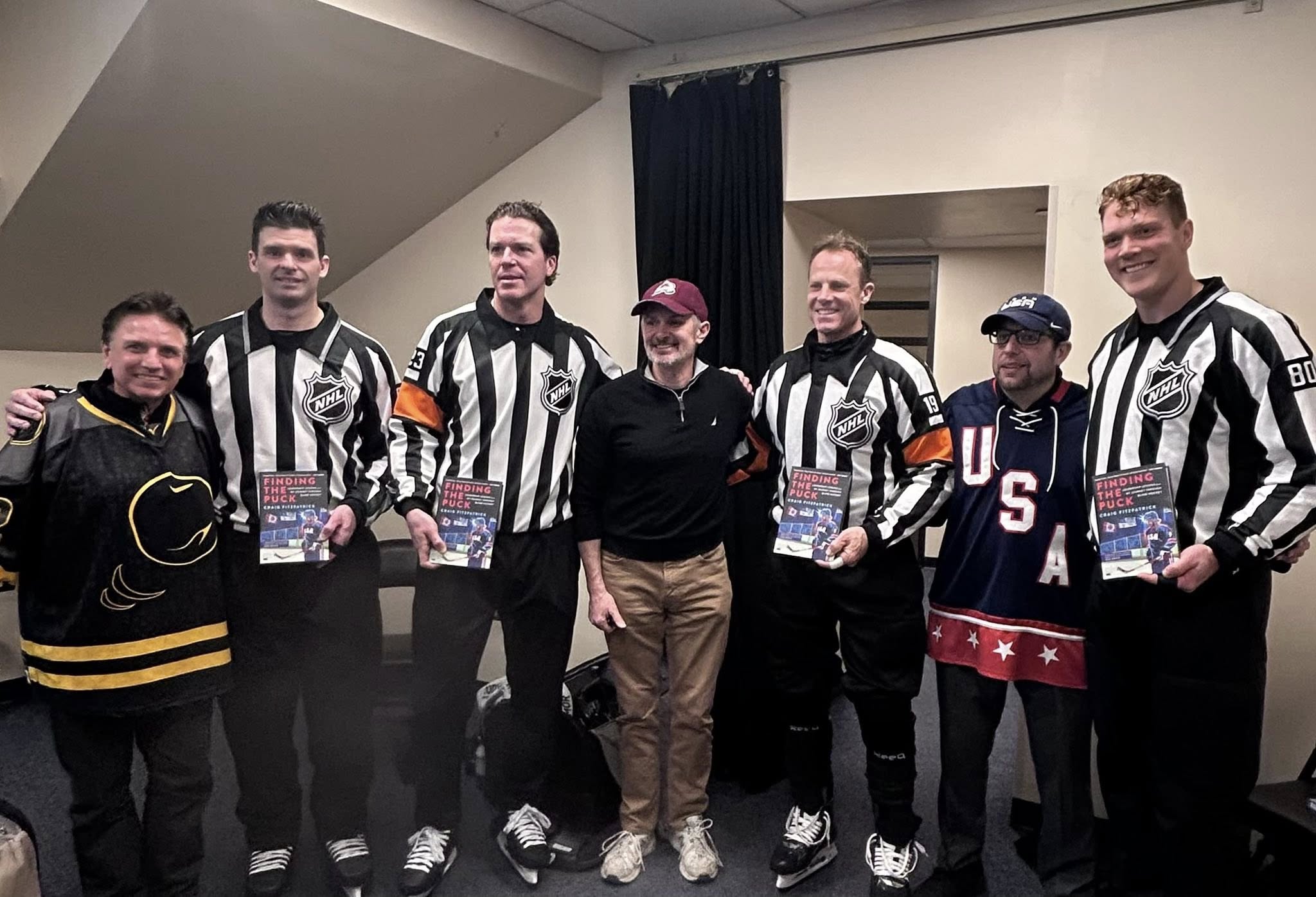 Kicked off the NHL Olympic break in style as I celebrated blind hockey with a couple legends of the sport. Craig Fitzpatrick got some quality airtime as he shared the story of his new book that chronicles his unlikely hockey journey. Josh Schneider is currently a member of the USA blind national team and hasn’t let the loss of his sight curtail his hockey dreams. In addition to the camera time I was able to setup an intermission meetup with last night’s officials. The boys in the stripes didn’t disappoint and even had game pucks for my friends!