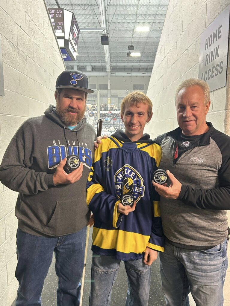 A whirlwind trip took the Dawg Father to the “Gateway to West” this weekend. With the DU Pioneers taking on Lindenwood University it was a perfect excuse to celebrate with our St Louis Dawgs! Our hard working STL boys hosted their first ever Lindenwood “Dawg Nation Night” as the Centene Rink was sprinkled with members of our pack! We of course took it up a notch as we celebrated with several past recipients including Steve Patten, Wyatt Owens and Dan Turner. Special thanks to Lindenwood University, the St Louis Blues Alumni, the NCAA, and the DU Pioneers for helping us make this a memorable night for everyone! Here’s to all of those that continue to give back and make the world a better place for all!