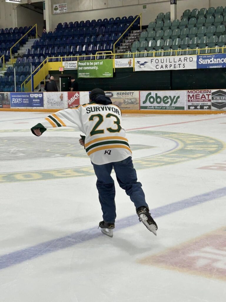 One of my most cherished hockey experiences is announcing the Humboldt Bronco starting lineup. It’s become a quite a tradition that was initiated in 2023 under Scott Barney’s leadership and continues with the new head man Brayden Kilmosko. Going into last night the Broncos were a perfect 4-0 when yours truly pumped up the boys! However the streak was looking bleak with the home team down 3-1 with just a few minutes remaining, but two quick goals including one with just 25 seconds remaining had the game all knotted up and overtime looked imminent! Well all good things must come to an end and that’s exactly what happened when Melfort lit the lamp with just four seconds left on the clock! It was a tough pill to swallow, but at the same time it was one heck of an effort by the always resilent Broncos! Along the way we tried luck at curling and even skated on the legendary Humboldt ice! Today we put a bow on another wonderful trip by sharing stories of second chances and triumph with the Bronco players and the fine folks of Humboldt!